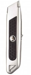Cutter ouvre carton en métal à lame auto-rétractable.