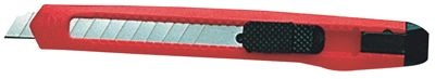 Cutter plastique. Système auto-bloquant de la lame. Livré avec une lame de rechange 18 mm dans le manche.
