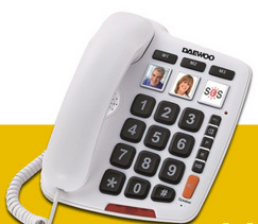 Clavier grands caractères numériques, 6 mémoires directes dont 3 avec photos, 10 mémoires indirectes et signal lumineux à chaque sonnerie.