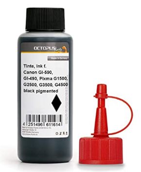Octopus 250ml Encre pour imprimante, Encre de Recharge Compatible pour Canon GI-590, GI-490 BK, Canon Pixma G1500, G2500, G3500, G4500, G1400, G2400, G3400, Couleur Noire (Pas d’OEM)