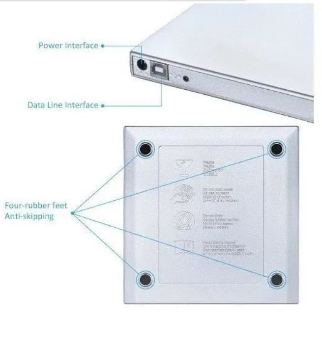 Lecteur/Graveur CD-DVD-RW USB pour PC Branchement Portable Externe (ARGENT)