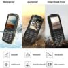 | Caractéristiques spéciales | ★SOS/Radio FM/Musique<br/>, ★3000mAh grande batterie-Power bank<br/>, ★32 Mb de RAM + 32 Mb de ROM, 32 Go de stockage étendu maximum<br/>, ★IP68 telephone portable etanche<br/>, ★2.4in ecran, 240*320<br/>, ★Telephone portable senior avec grandes boutons<br/>, ★Caméra VGA 0.3MP<br/> |