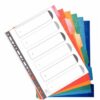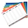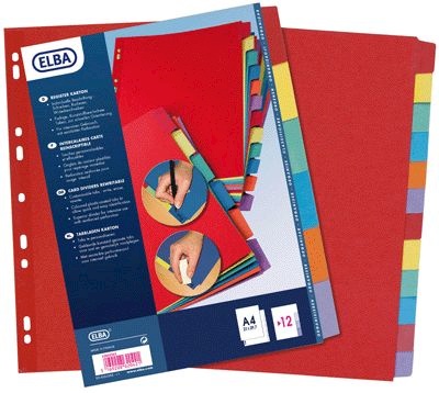 Jeu de 12 intercalaires cartonnés, format A4 : 21 x 29,7 cm – Jeu de 12 intercalaires cartonnés, format A4 : 21 x 29,7 cm. Intercalaires en carte blanche 150g avec perforations renforcées. Touches neutres multicolores renforcées mylar. fourni avec un sommaire en bristol à imprimer.