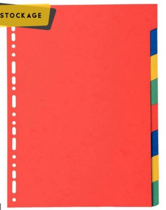 Jeu de 12 intercalaires cartonnés, format A4 : 21 x 29,7 cm – Jeu de 12 intercalaires cartonnés, format A4 : 21 x 29,7 cm. Intercalaires en carte blanche 150g avec perforations renforcées. Touches neutres multicolores renforcées mylar. fourni avec un sommaire en bristol à imprimer.