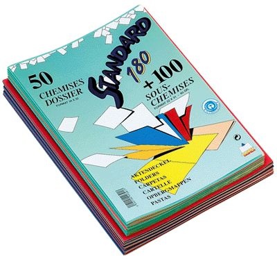 Lot de 50 chemises FOREVER 170g + 100 sous-chemises SUPER 60g. Chemises format 24 x 32 cm, 10 couleurs assorties. Sous-chemises format 22 x 31 cm, 5 couleurs assorties.