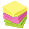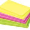 Lot de 12 blocs de notes repositionnables de 80 feuilles 75 x 75 mm couleurs vives assorties.