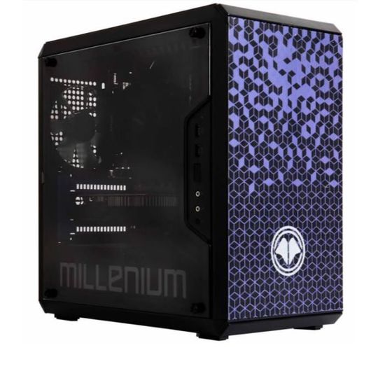 ouez comme un pro et profitez d’une puissance imbattable pour une expérience de jeu optimale. Pièce majeure de l’arsenal du gamer, le PC Gamer mérite une attention très particulière. L’intégralité de nos PC sont conçus avec des composants testés et approuvés par nos experts techniques. Sur ce PC MM1 Mini, l’objectif est de proposer une machine offrant un excellent rapport performance/prix avec une belle capacité d’évolution grâce à son processeur 4 cœurs accompagné de 8 Go de RAM et d’une GTX 1650. PC Gamer MM1 Mini // Parce que tout le monde ne veut pas forcément d’un PC imposant, la version Mini du PC MM1 s’intégrera parfaitement à votre setup avec son design sobre et soigné. Le MM1 Mini répondra parfaitement aux besoins des joueurs cherchant une machine accessible tout en leur permettant de jouer dans les meilleures conditions. Le processeur Ryzen 3 3200G offre des performances solides qui en font un allié de choix pour un PC abordable. Les 8 Go de mémoire vive pourront assumer la gestion de nombreux logiciels et de jeux gourmands tandis que la GTX 1650 permet de jouer confortablement en 1080p. – AMD 3200G – 8 GO DDR4 – GTX 1650 Choix des composants // Avoir un processeur puissant disposant de 4 cœurs est une chose mais l’accompagner de mémoire vive performante et visuellement attrayant l’est tout autant. En effet le Ryzen 3 3200G a besoin d’une mémoire vive rapide pour fonctionner à son plein potentiel. C’est pourquoi nous installons deux barrettes de 4 Go permettant un premier gain de débits grâce au fonctionnement en DUAL Channel. Ensuite, l’installation d’un kit fonctionnant à 2400 MHz optimisé pour les processeurs Ryzen et proprement configuré dans le BIOS permet un fonctionnement optimal du PC. L’alimentation est souvent un élément négligé sur les PC pour petits budgets : pour éviter que notre MM1 Mini parte en fumé, nous avons fait le choix d’un modèle de 450 Watts disposant de la certification 80 Plus Bronze. Nous avons fait le choix d’intégrer la GTX 1650 qui dispose de la dernière génération de processeur graphique d’Nvidia : Turing. Celle-ci apporte son lot d’optimisation et d’améliorations permettant des performances en nette hausse ( jusqu’à +67% face à une GTX 1050 Ti) tout en conservant une consommation électrique faible ( 78.5 Watts en jeu) Caractéristiques : – Processeur : AMD Ryzen 3 3200G (3,6GHz-4GHZ Boost ) – 4 cœurs physiques / 4 cœurs logiques – Carte mère : Micro ATX (chipset A320) – Mémoire vive : 2x4Go DDR4 2400 MHz – Carte graphique : Nvidia GeForce GTX 1650 4Go – SSD : SSD 250Go – 2 emplacements libres – Disque dur : HDD 1TO (7200tr/min) Alimentation : 450 Watts (80 Plus Bronze) – Boîtier : Millenium MM1 Mini – Refroidissement : Processeur : Ventirad AMD / Arrière : 1 ventilateur 120mm inclus / Avant : 2 emplacements 120/140mm / Haut : 2 emplacements 120mm – Connectique générale : PS2 x2 ; USB 3.0 (4+2 façades) – USB 2.0 x2 – Connectique Audio : Entrée micro Jack 3.5mm (1+1 façade) / Sorties audio Jack 3.5mm (2+1 façade) – Connectique vidéo : Display Port x1 – HDMI x2 – DVI x1 – Connectique réseau : filaire RJ45 – Lecteur / Graveur : Non – Lecteur de cartes : Non – Système d’exploitation : Windows 10 – Accessoires fournis : Câble d’alimentation