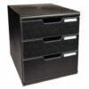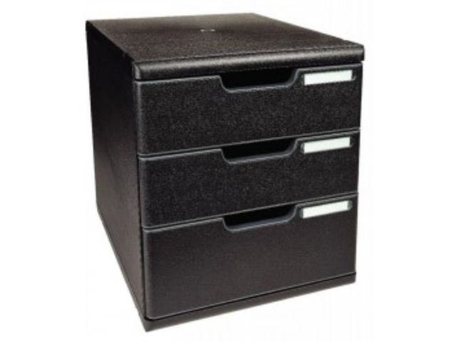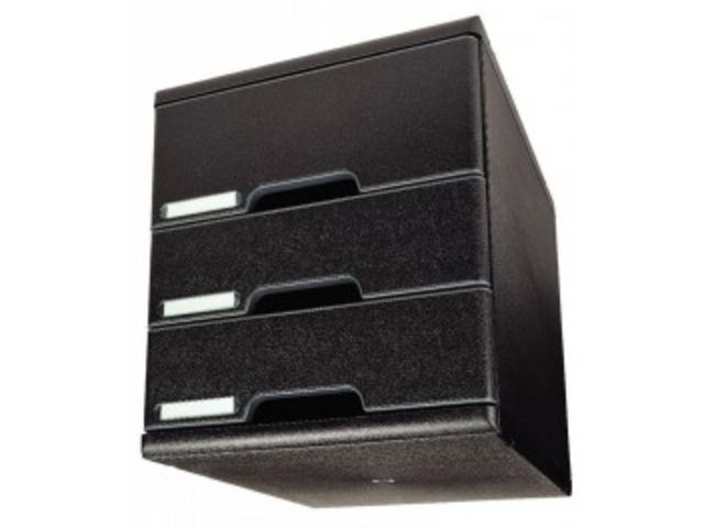 Module 3 tiroirs modulo noir. Système de classement élégant et fonctionnel pour documents au format A4+ Modules de hauteur identique à celle d”un classeur à levier, superposables et juxtaposables (Modulo A4 & A3 combinables) Evolutif grâce à 4 hauteurs de tiroirs (26,54,82 et 110mm) interchangeables 4/3/2/1 Coulissement parfait des tiroirs, avec la butée de sécurité, poignée confortable et porte-étiquette.
