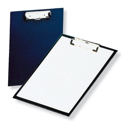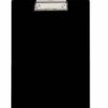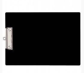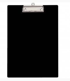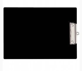 Plaque porte bloc en plastique noir à pince métallique.