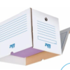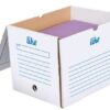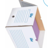 Paquet de 10 boîtes à archive dos 25 cm. Dimensions montée : Longueur 34 x Hauteur 25 cm.Fond blanc, impression bleue. Carton ondulé rigide blanc. Impression à la verticale et à l”horizontale pour lecture sur petit et grand côté. Montage simple et rapide. Livré à plat.