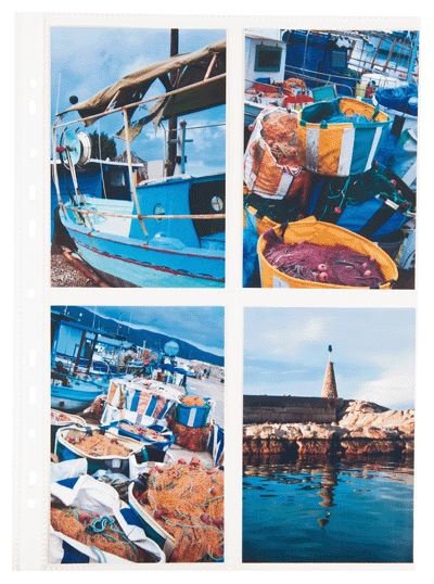 Paquet de 25 pochettes perforées pour photos 10×15 cm. En polypropylène 9/100ème incolore. Contenance: 8 photos (4 recto et 4 verso). Pour classer jusqu”à 200 photos dans un classeur à anneaux.