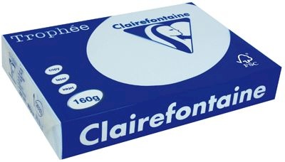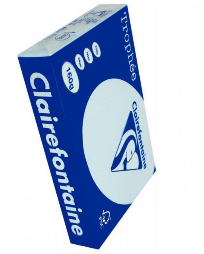 Paquet de 250 feuilles de papier 160g de format A4 bleu TROPHEE CLAIREFONTAINE. Large gamme en teintes pastel. Grâce à son excellente opacité, les impressions recto verso sont parfaites, le rendu fidèle des couleurs est assuré. Sa grande tenue permet un passage impeccable en machine. Son emballage refermable et transparent permet de vérifier la couleur et le niveau de papier restant dans la ramette. TROPHEE vous offre une qualité d”impression irréprochable en copie, jet d”encre ou laser. Sa structure homogène garantit un passage en copieur sans bourrage.