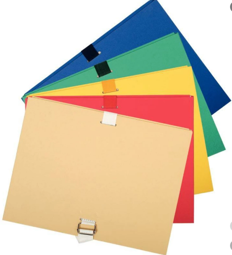 Paquet de 5 chemises à dos extensible qualité toilée, coloris assortis. Format 24 x 32 cm. Plat et dos recouverts de papier grainé, sangle assortie au coloris du plat, boucle métal. Extensible jusqu”à 13 cm, sans rabat. Capacité 1000 feuilles. 5 coloris assortis : rouge, jaune, bleu, vert et mastic.