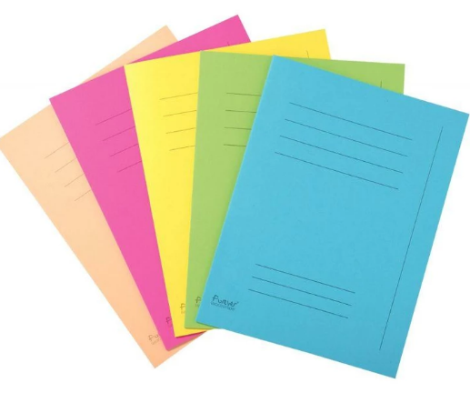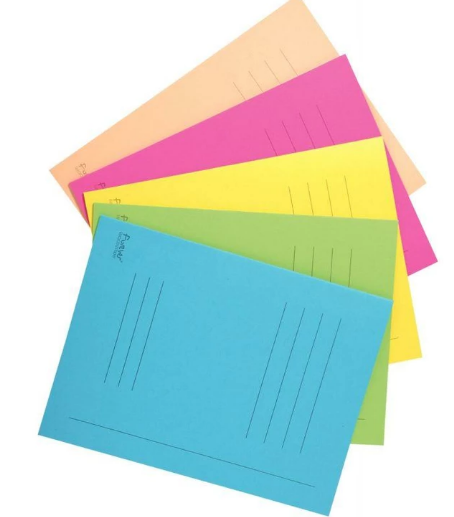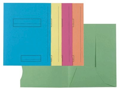 Paquet de 50 chemises imprimées 210g avec 2 rabats, format 24×32 cm. Cadres imprimés sur la 1ère de couverture pour une identification facile et soignée et 2 rabats pour un parfait maintien des documents. 5 couleurs assorties: bleu clair, bulle, canari, rose et vert clair.