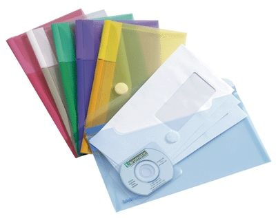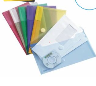 Paquet de 6 enveloppes chéquier en polypropylène translucide. assortis. Format 25×13.5cm.