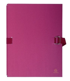 Plats recouverts de papier toilé couleur. Dos extensible jusqu’à 13 cm. Rabat en pied. Fermeture par sangle assortie au coloris de la chemise, boucle à coulisseau cranté.