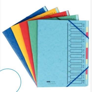 Trieur carte lustrée dos agrafé 12 compartiments.