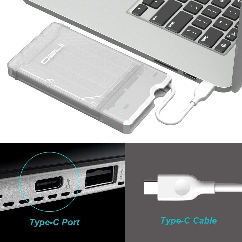 - Boîtier externe USB3.1 Gen2 (10Gbps) avec connecteur type C offrant une vitesse de lecture et d’écriture ultrarapide pour disque dur SATA 2,5 pouces externe, disque dur et SSD se connectant à un ordinateur de bureau et portable – En blanc transparent pour Apple MacBook