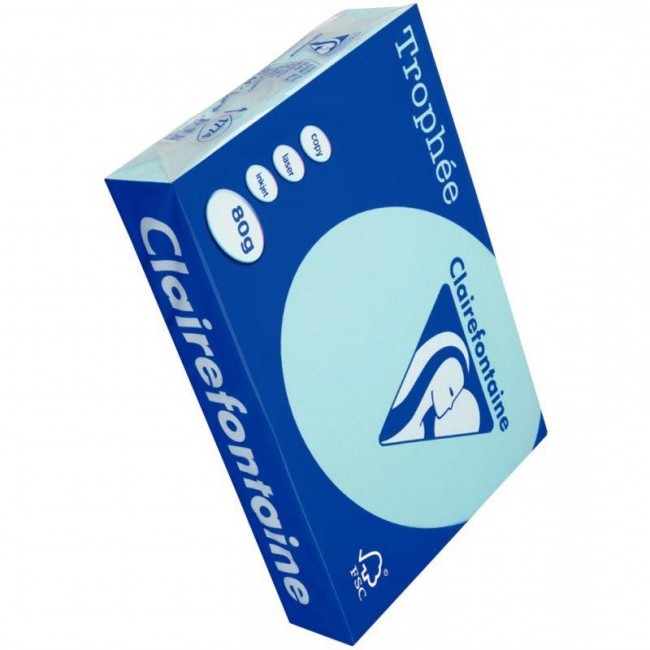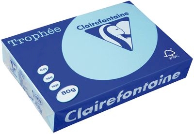 Ramette de 500 feuilles de papier 80g de format A4 bleu alizé TROPHEE CLAIREFONTAINE. Grâce à son excellente opacité, les impressions recto verso sont parfaites, le rendu fidèle des couleurs est assuré. Sa grande tenue permet un passage impeccable en machine. Son emballage refermable et transparent permet de vérifier la couleur et le niveau de papier restant dans la ramette. TROPHEE vous offre une qualité d”impression irréprochable en copie, jet d”encre ou laser. Sa structure homogène garantit un passage en copieur sans bourrage.