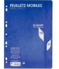 Sachet de 50 feuillets mobiles, 100 pages, 17×22 cm seyes 90 g blanc