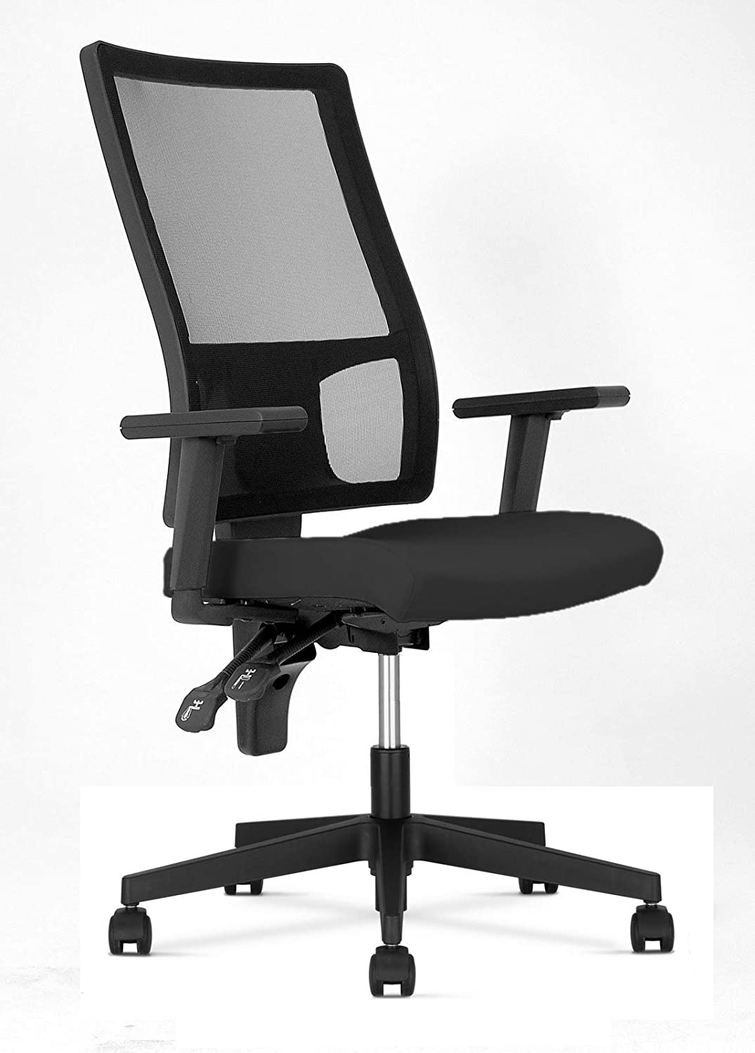 • DOSSIER: Cadre du dossier en polypropylène injecté. Dossier tendu en résille noire, multi blocable 5 positions. Réglage du dossier en hauteur par volant latéral.