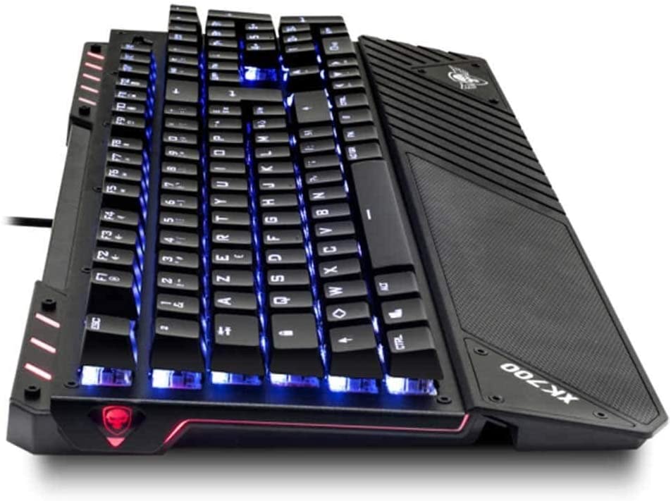 - ERGONOMIQUE ET CONFORTABLE : Avec ses 12 raccourcis Multimédia par combinaison de touches, vous accédez directement à plusieurs fonctionnalités : lancez votre Playlist préférée, réglez le volume rapidement, lancez votre navigateur web… Coté design, XPERT-K700 bénéficie d’une finition soignée avec son châssis aluminium, d’un repose poignets amovible (ABS) pour un confort de jeu prolongé. Il est réglable en hauteur 1 position et équipé de patins en silicone antidérapants.