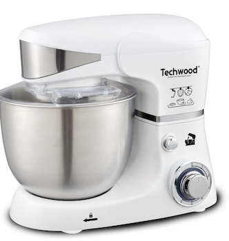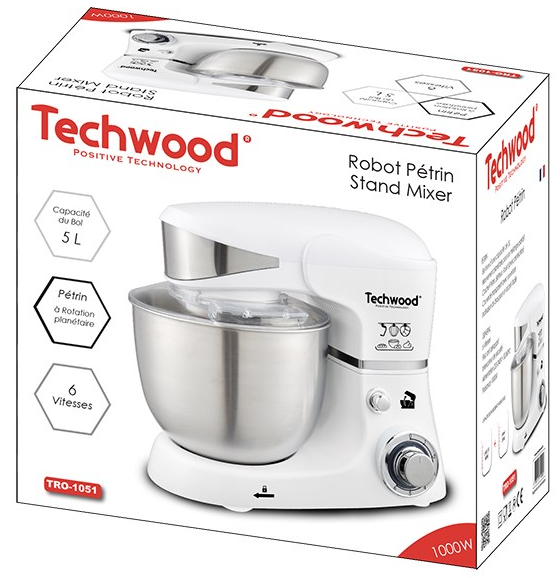Ce robot pétrin blanc proposé par Techwood dispose d’un grand bol en inox d’une capacité de 5 L pour vous permettre de réaliser une multitude de préparation !  Son bras réalisant un mouvement planétaire vous donnera la possibilité de réaliser des mélanges parfaits, et s’inclinera quand vous n’en aurez plus besoin. Grâce à ses 6 vitesses de rotation vous pourrez pétrir avec le crochet pétrisseur, fouetter mais aussi battre vos ingrédients grâce au fouet et batteur inclus. Le bol dispose d’un couvercle pour éviter les éclaboussures, et contrôler et ajuster vos préparations en cours grâce à sa transparence et son ouverture.