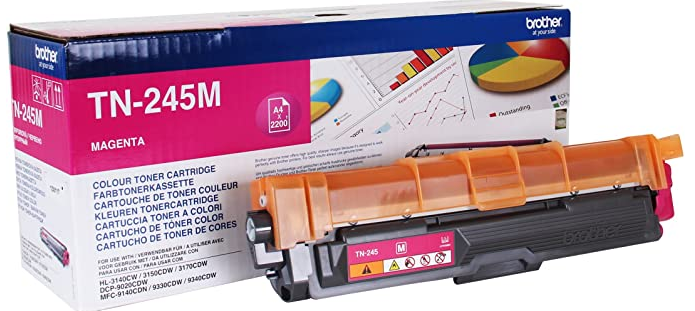 Avec la cartouche de toner magenta TN-245M Brother originale, obtenir des résultats attractifs et de qualité professionnelle devient un jeu d’enfant. Compatible avec une large gamme d’imprimantes Brother, la cartouche TN-245M existe aussi en cyan et en jaune. Chez Brother, nous testons rigoureusement toutes nos cartouches, y compris cette cartouche de toner magenta TN-245M, pour garantir la plus grande fiabilité professionnelle possible aux utilisateurs. Bien qu’il soit facile de trouver des cartouches d’autres marques à petit prix, ces cartouches ne sont pas parfaitement compatibles avec votre imprimante Brother. Elles peuvent générer des problèmes en termes de qualité d’impression et de performances et ces problèmes peuvent parfois se révéler chers à réparer. Grâce à la cartouche de toner TN-245M originale, votre imprimante continue de fonctionner sans accrocs : vous bénéficiez d’une valeur plus avantageuse sur le long terme et vous avez l’esprit tranquille, puisque vous savez que la configuration que vous utilisez est fiable. Compatiblité avec les modèles Machines: Brother DCP-9015CDW, DCP-9020CDN, DCP-9020CDW, HL-3140CW, HL-3150CDW, HL-3170CDW, MFC-9140CDN, MFC-9330CDW, MFC-9340CDW