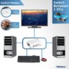 - Switch KVM à 2 ports avec connexions VGA et USB vers les PC et appareils audio