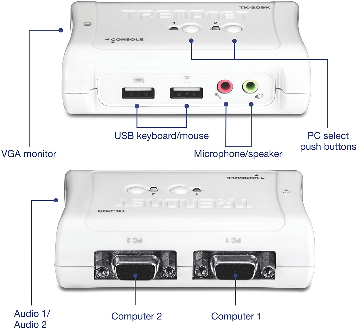 KVMTRENDNET TK-209K – KVM 2 PORTS VGA/USB +AUDIO +CABLES