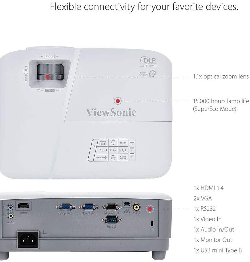 VIEWSONIC Vidéo Projecteur XGA 3600 lumens, XGA, 1024×768