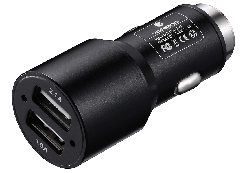 • Chargeur de voiture double USB avec ports USB 2.1A et 1.0A.