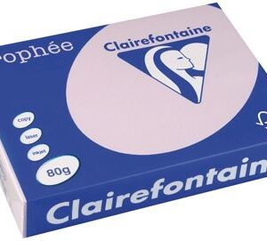 Ramette de 500 feuilles de papier 80g de format A4 lilas TROPHEE CLAIREFONTAINE. Gr�ce � son excellente opacit�, les impressions recto verso sont parfaites, le rendu fid�le des couleurs est assur�. Sa grande tenue permet un passage impeccable en machine. Son emballage refermable et transparent permet de v�rifier la couleur et le niveau de papier restant dans la ramette. TROPHEE vous offre une qualit� d”impression irr�prochable en copie, jet d”encre ou laser. Sa structure homog�ne garantit un passage en copieur sans bourrage.