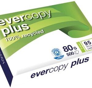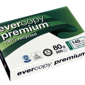 Ramette 500 feuilles A3 80g EVERCOPY PREMIUM. Papier de bonne blancheur, à légal des papiers standards. Indice de blancheur = 145. Papier 100% recyclé. A base de 100% de vieux papiers non désencrés. Son principe de fabrication unique permet avec 106kg de vieux papiers de produire 100kg de papier ramettes sans désencrage ni utilisation dazurant optique. Qualité dimpression et passage machine en tous points semblables aux papiers fibres vierges. Certifié , FSC, Ange bleu, Eco label, DIN 6738 et Colorlok. Fabriqué en France.